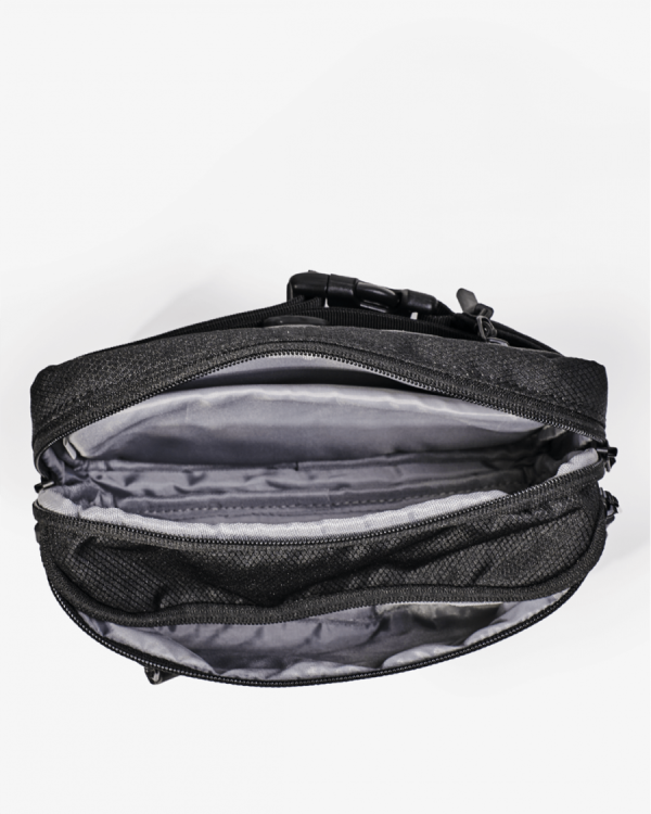 - Deux poches plaquées zippées sur l’avant et sur l’arrière à l’extérieur