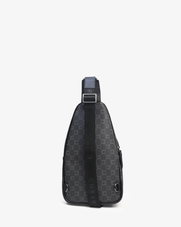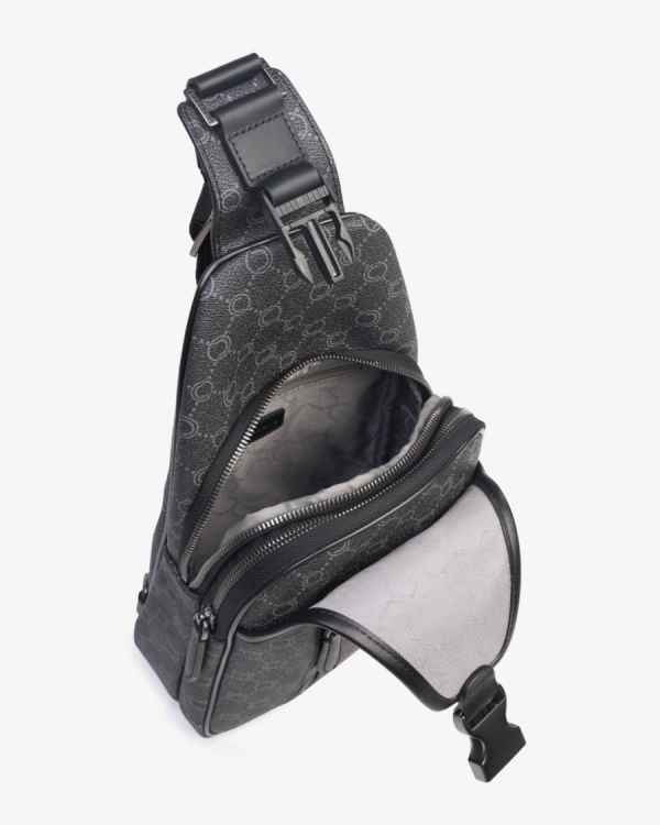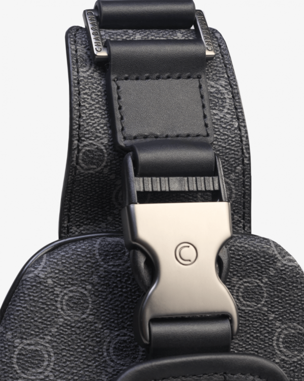 Body-bag noir finition canon de fusil en toile enduite siglée garnie cuir