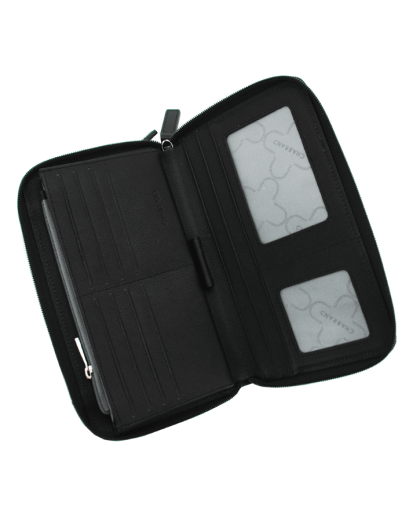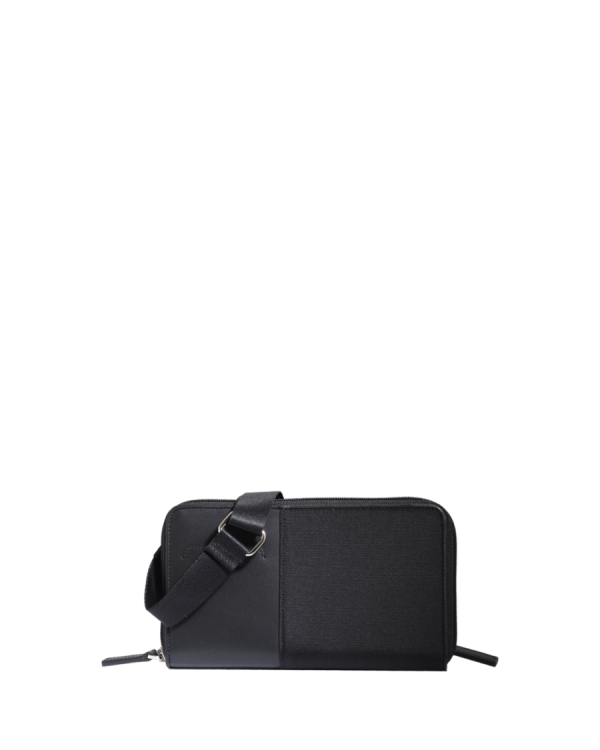 Grand portefeuille noir en toile garnie cuir
