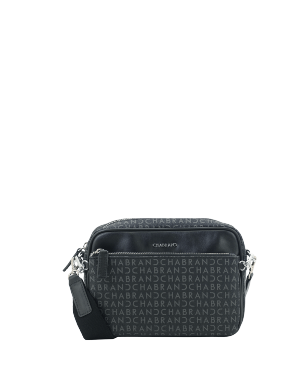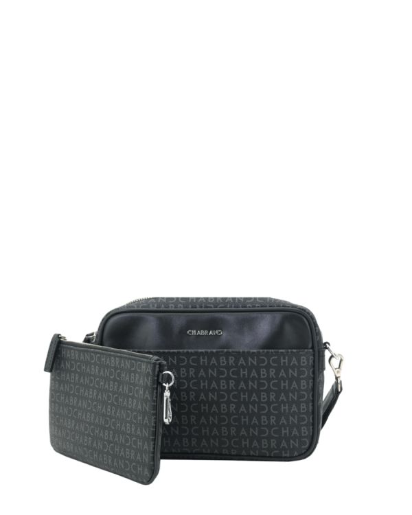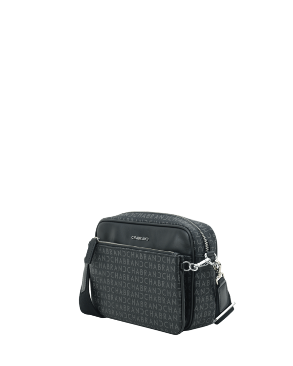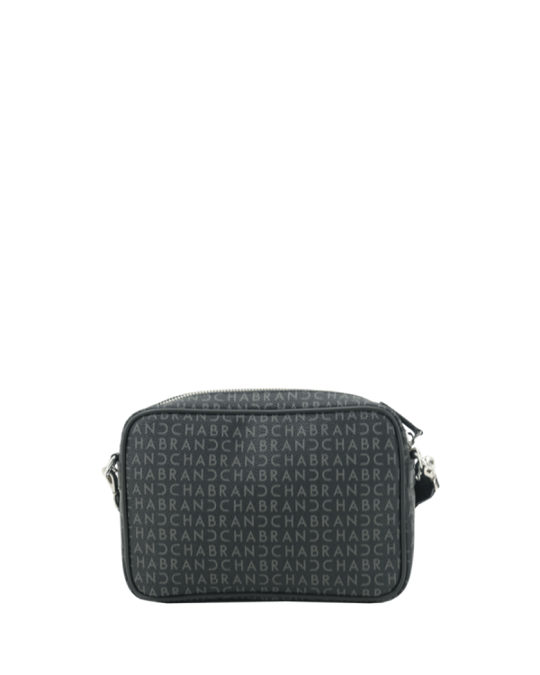 Mini-sacoche noire en synthétique siglé garni cuir