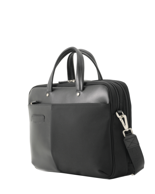 Porte-documents noir en toile garnie cuir