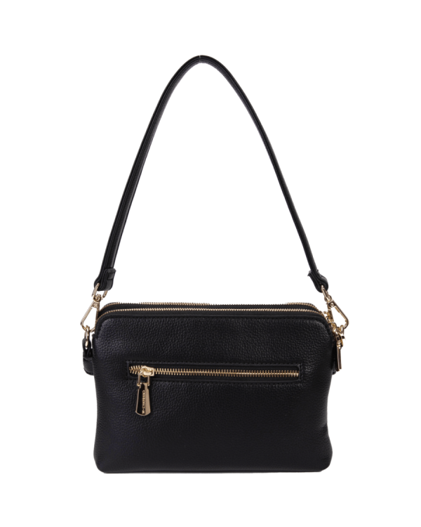 - Une poche plaquée zippée sur l’arrière à l’extérieur