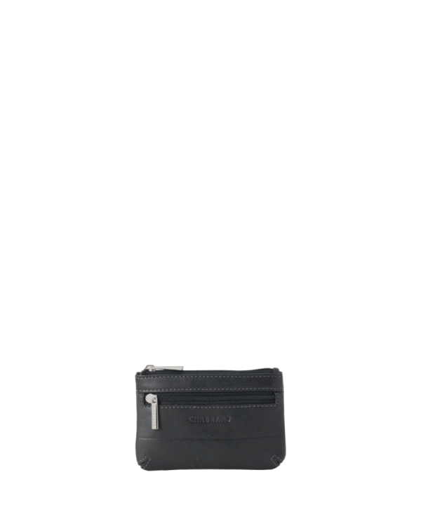 Porte-monnaie noir en cuir de vachette lisse