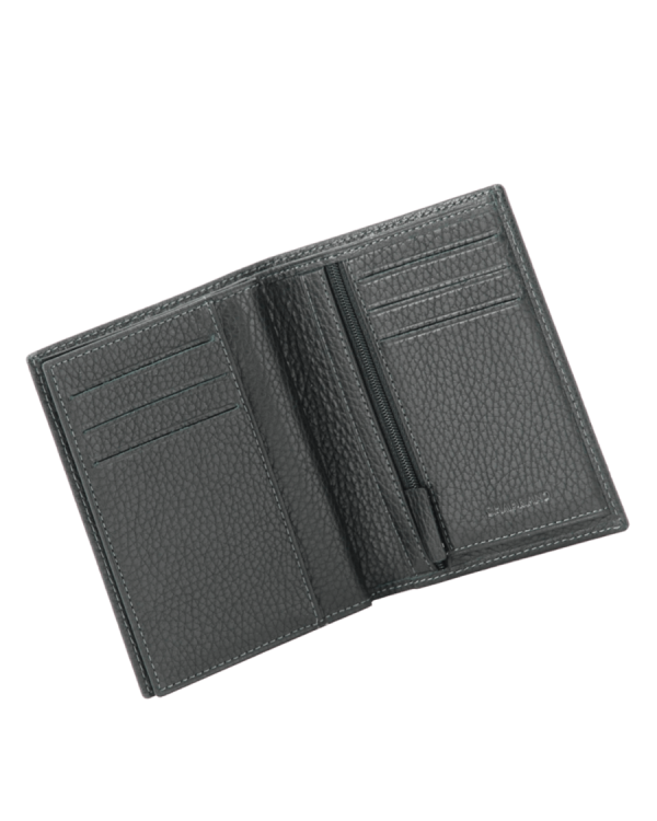 Portefeuille noir en cuir de vachette grainé